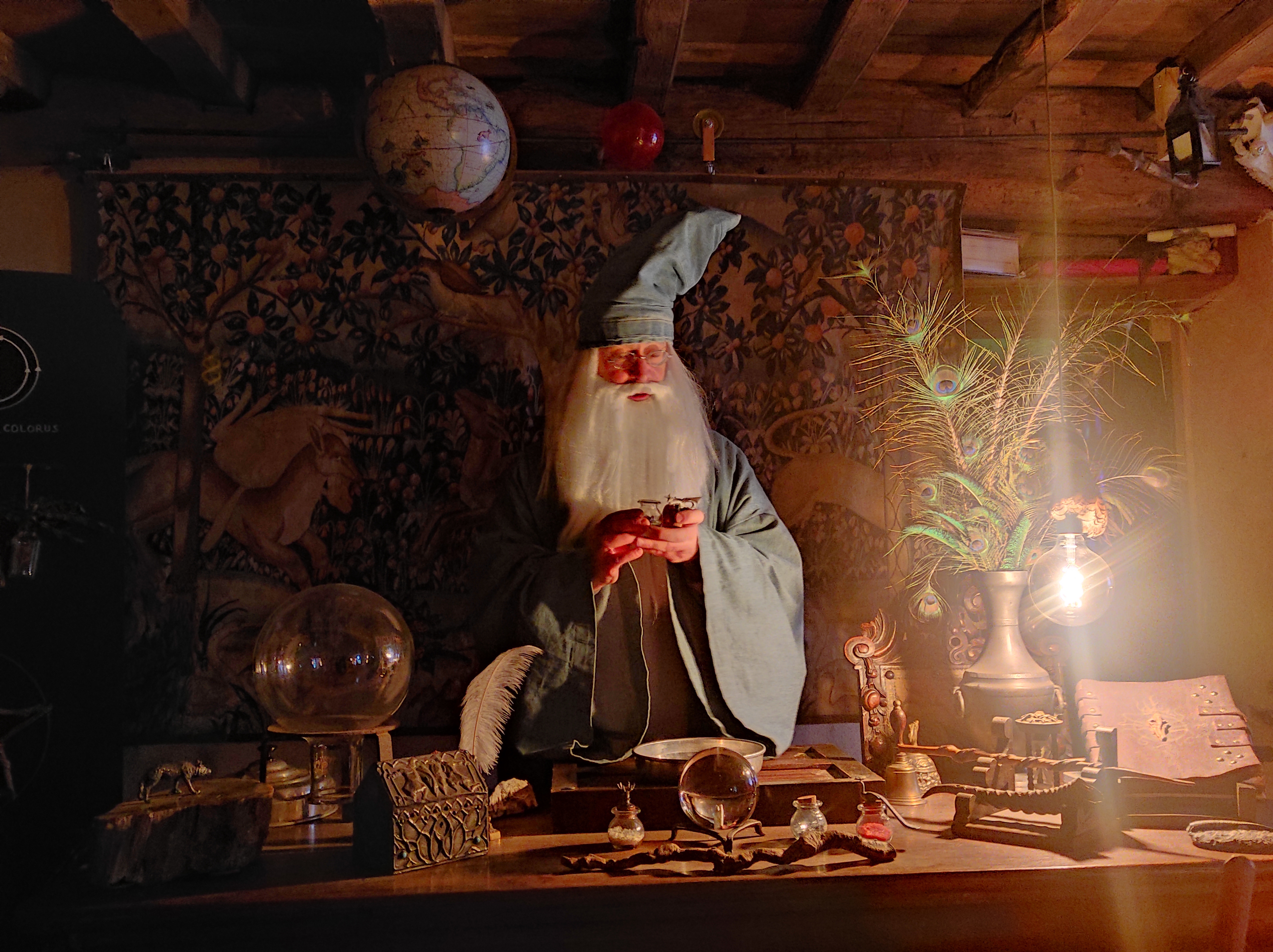 Merlin, malgré son grand âge, a du mérite de conter et enseigner la magie du coin ainsi que potions, tours et formules magiques aux chevaliers, sorcières et fées en herbe. Doté d'un grand sens de l'humour et dune répartie à toute épreuve, le mage chapeauté vaut le détour. Un escape game guidé pour petits et grands enfants.