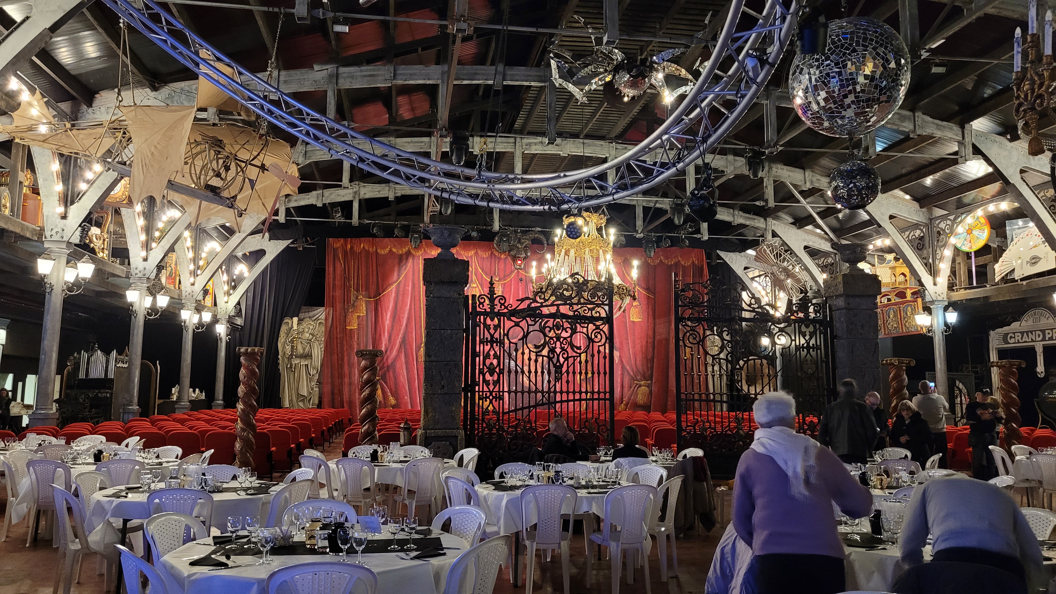 Salle superbe Plus agréable en mode spectacle qu'en mode repas. Mais très joliment habillé des décors de scène