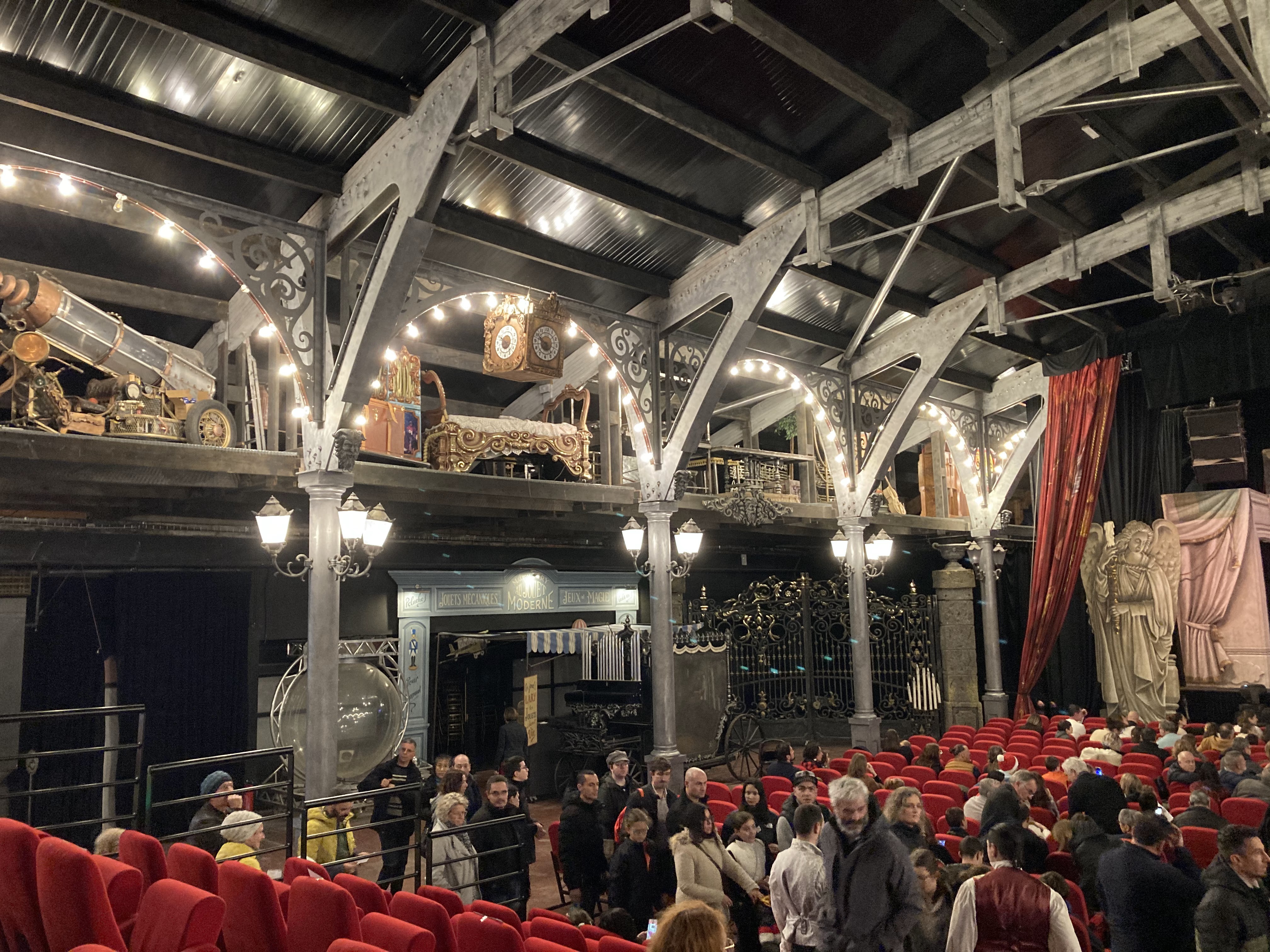 Magique ! Ça tient ses promesses :) le décor est un spectacle en soi, et la salle respecte tous les codes du théâtre tout en permettant une proximité chaleureuse que nous avons apprécié. Si vous avez l'occasion, foncez !