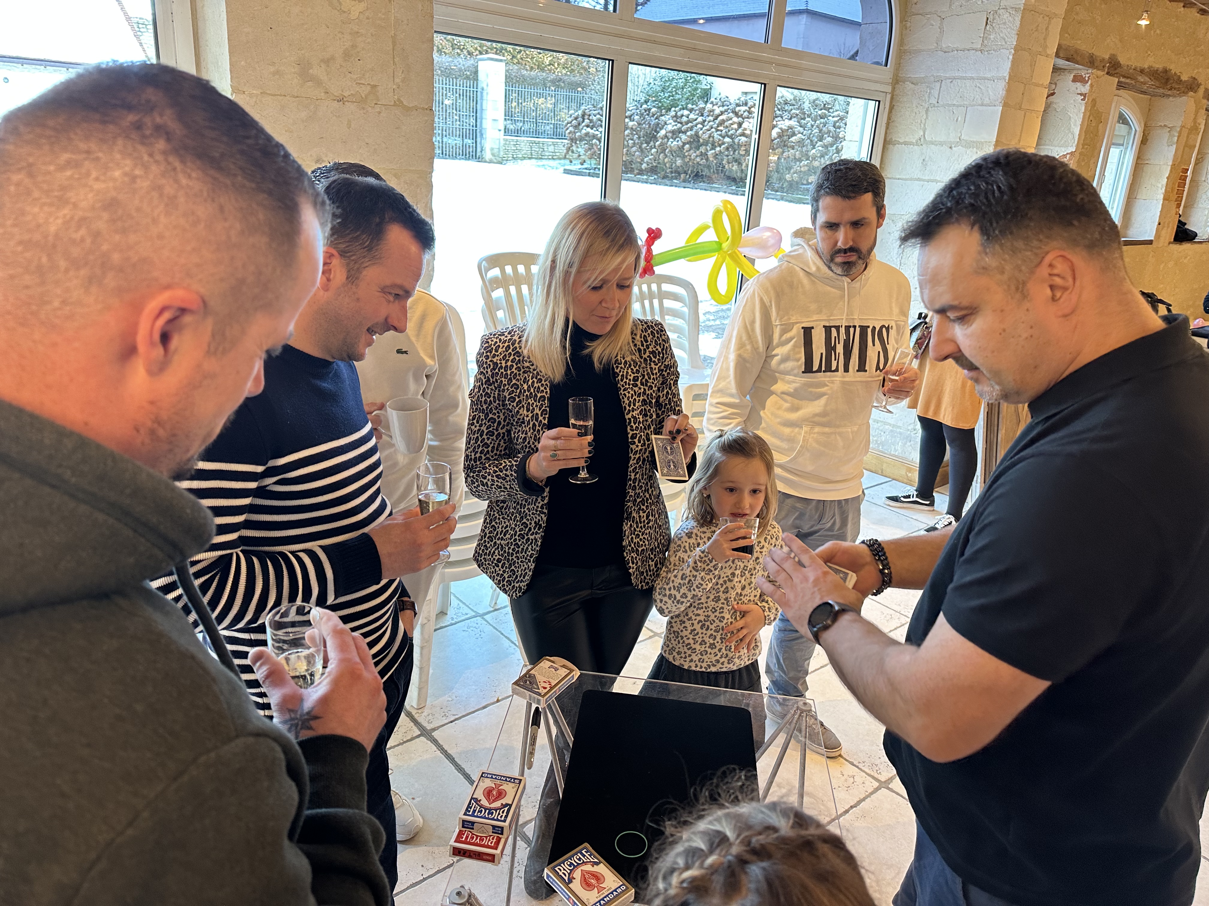 Au cours de la soirée de noel organisée par notre CSE, Nicolas nous a bluffé avec ses tours de magie de très haut niveau ! Le spectacle de magie pour les petits les a émerveillés. Ses tours de cartes et son mentalisme nous ont achevés 😅 Merci pour ton professionnalisme, ta bonne humeur et ta gentillesse.